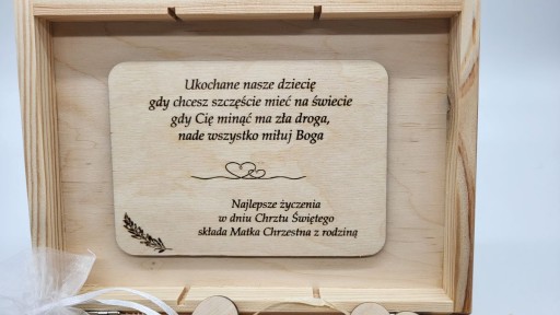 Всередині кришки на фанерній дошці написані побажання, звісно, ми можемо помістити туди присвяту, вірш чи інший текст відповідно до потреб та побажань клієнта, але пам’ятайте, що надісланий вами вміст не коригується, а лише копіюється та роздруковується, тому уважно перевірте, чи немає помилок і чи конкретні слова написані великими чи малими літерами та знаками пунктуації. НЕ ЗАВАЖАЙМО САН ТРЕ!