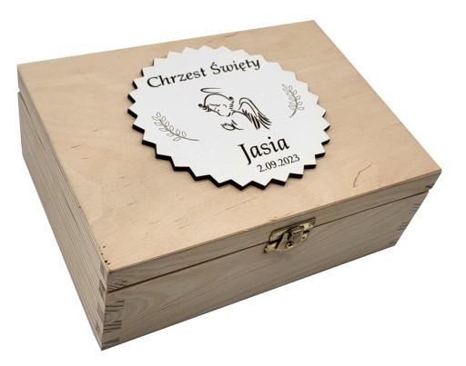 Дерев'яна коробка, закрита гравіюванням. Персоналізований, що робить його унікальним сувеніром на будь-який випадок.