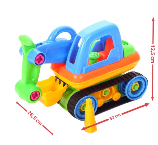У нашому наборі 36 елементів для загвинчування та розбирання. Великі елементи дуже легко збирають екскаватор. Урізноманітніть розваги за допомогою гайкових ключів, викруток і дриля з батарейним живленням.