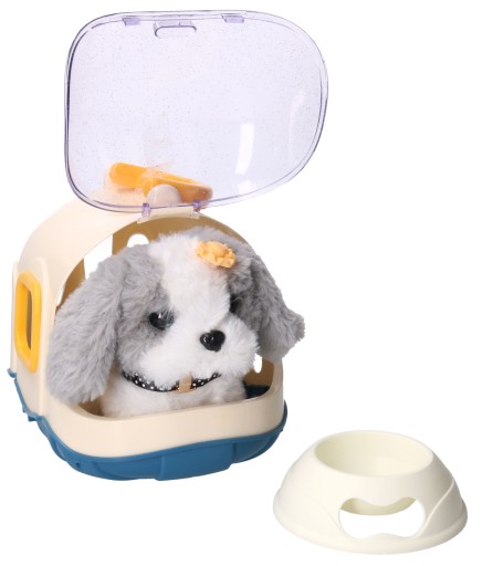 У собаки є всі необхідні аксесуари для догляду: миска, колесо, фен, заколки та інше :)