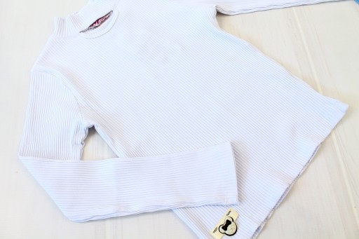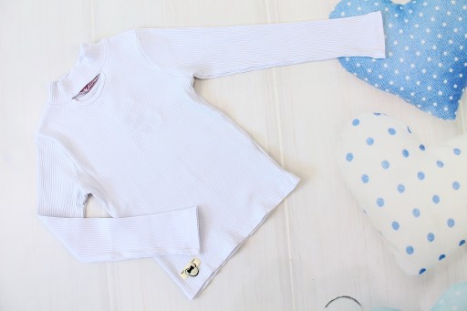 Біла бавовняна блуза-водолазка з декоративним вирізом з м'якої бавовни в смужку.