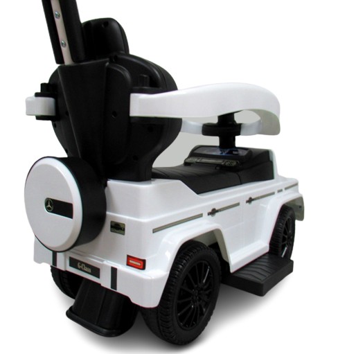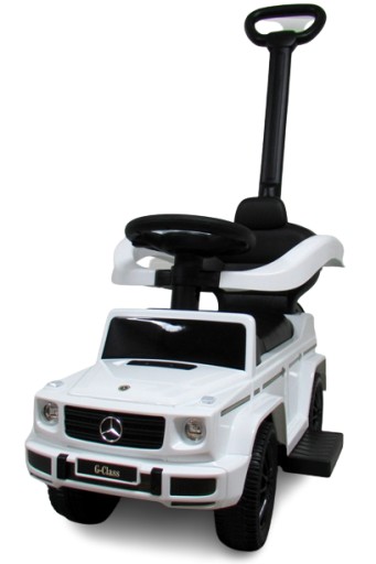 Штовхачем керує батько за допомогою задньої ручки. Поручні безпеки не блокують кермо. Кермо повністю поворотне! Батько використовує задню ручку для керування передніми колесами (ви можете повертати передні колеса за допомогою задньої ручки).