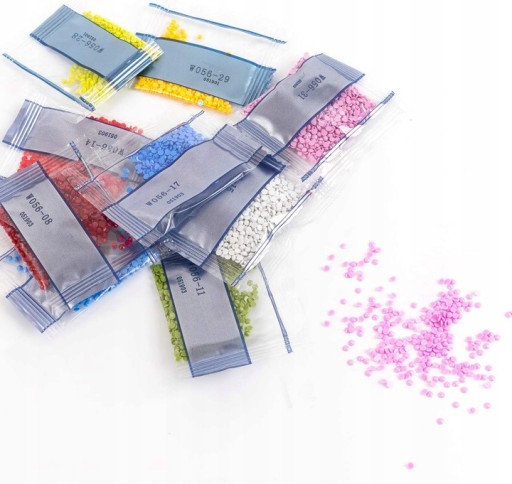 3. Виберіть ромби, які будете наклеювати Знайдіть відповідні символи та цифри на відкритій частині полотна. Насипте порцію кристалів обраного кольору в пластиковий контейнер.