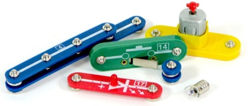 двигуни, вимикачі, джерела світла, звукові модулі, радіомодуль СВЧ і ЧМ, резистори, конденсатори, тиристори, звукозаписувач, цифрові дисплеї...