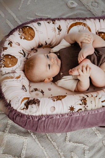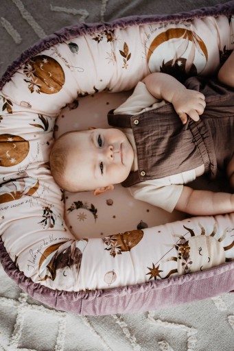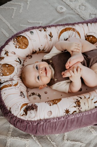 Кокон Best Nest Velvet Fly me to the Moon Nude S La Millou Багатофункціональний дитячий кокон, створений з любов'ю до дітей: щоб у малюка завжди було своє окреме, дружнє місце для ігор, сну та відпочинку під пильним оком батьків. Малюк, що лежить в коконі, може проводити час з батьком, супроводжуючи його під час різних занять, таких як робота, відпочинок на дивані, купання і навіть під час прогулянок на свіжому повітрі. Він ідеально підходить для подорожей, немовлятам іноді важко справлятися з незнайомими місцями та новим середовищем, завдяки нашому кокону дитина завжди може мати власне місце для відпочинку з ними. Внутрішня частина бортів і низ виготовлені з повітряної бавовни, а зовнішня частина - з м'якого і повітропроникного елегантного оксамиту. Боковини наповнені м'якою силіконовою кулькою, що не викликає алергії. У нижній частині кокона ми вшили тканинну пружину, тому кокон можна сміливо прати в пральній машині без ризику зрушення. Кокон можна стягнути за допомогою нитки внизу, що дозволяє легко регулювати розмір. Для дітей старшого віку виріб можна розв'язати, створюючи дружню ігрову зону, яка не сковує рухів дітей. Шнурок додатково фіксується складкою, що робить його абсолютно безпечним для дитини. Наші кокони випускаються двох розмірів: звичайний і великий. Звичайна версія більш зручна і ідеально поміщається навіть у менших кошиках або насадках для батьківського ліжка. Версія Grande (якщо потягнути знизу) поміщається в петлі розміром від 60 см x 120 см, а коли застібка розгортається внизу, кокон стане затишним місцем для ігор і відпочинку навіть для маленьких дітей. років. ПРИМІТКА: дитячий кокон не можна використовувати як переноску, і дитину в ньому не можна носити. Продукт слід використовувати під наглядом дорослих.