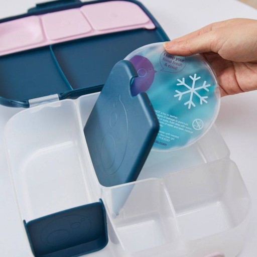 b.box lunchbox пропонує кілька інтелектуальних рішень. Ви можете відрегулювати або прибрати рухливі розділювачі, щоб у коробку помістився, наприклад, цілий шматок банана чи яблука. Велике квадратне відділення ідеально підходить для смачної пасти з овочами або бутербродів, а його дизайн дуже практичний. Варто відзначити, що подвійне дно дозволяє розмістити всередині охолоджувальну вставку, яка збереже продукти у відділеннях свіжими і холодними, що особливо важливо в спекотні дні.