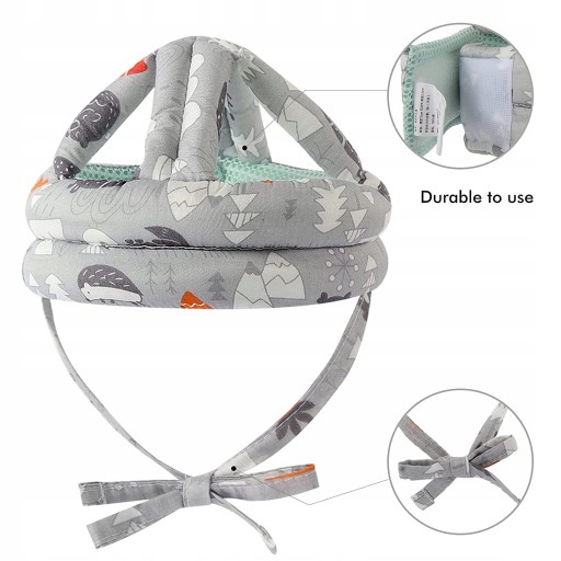 Захисний ковпачок діє як шолом і має вшиту всередину губку, яка поглинає будь-які удари або удари по голові, лобі, потилиці, скроні або передньому тім'ячку вашої дитини.