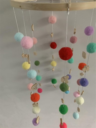 Безпечний матеріал: цей дитячий мобіль виготовлений з повстяних кульок і бамбука, він нетоксичний і екологічно чистий.