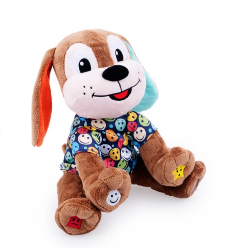 Цей емоційний пес навчить дітей розпізнавати та називати емоції! Кожна з чотирьох програмних програм має різні відчуття, форму та колір. Натисніть на одну з них, і собака доступно пояснить, як ми поводимося, коли відчуваємо ту чи іншу емоцію, а також з чим можна порівняти форму на додатку і колір. Супроводжуйте це пісеньками для вух, завдяки яким найменшим дітям буде легше запам'ятати інформацію, яку надає собака. Іграшка має сердечко, що світиться, а лапки оснащені опцією ввімкнення/вимкнення.