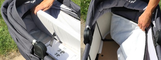 Також варто звернути увагу на тканини, з яких виготовлена коляска - з першого погляду видно, що при виготовленні Nio використовувалися високоякісні матеріали, які є перевагою цієї моделі не тільки через естетичний аспект, але й але також через їх внесок у довговічність коляски та її готовність служити своїм батькам під час різних погодних умов.