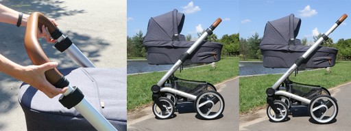 Завдяки тому, що ручка коляски регулюється по висоті, коляска Nio є ідеальним рішенням як для низьких, так і для високих батьків або опікунів.