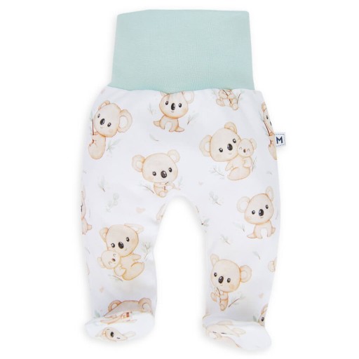Ползунки мають еластичний пояс, який фіксує їх у потрібному місці, не стискаючи живіт дитини. Шнур м'ятного кольору, який чудово поєднується з листям евкаліпта, які їдять коали. Крім того, в промежині є широка вставка, що додатково підвищує комфорт носіння.