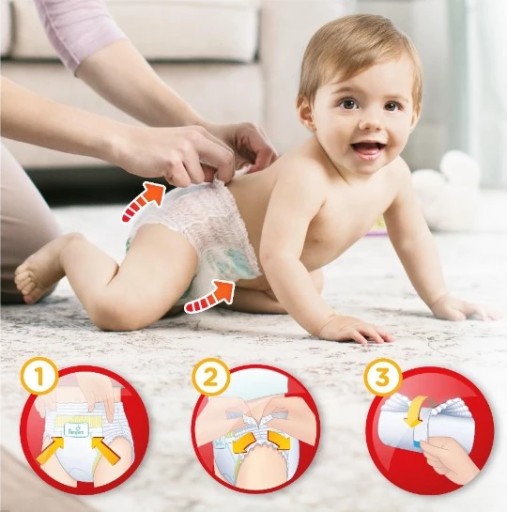 Ви можете легко поміняти штанці підгузники Pampers, навіть якщо ваша дитина почне звиватися під час зміни підгузника: достатньо всього одного руху, щоб надіти їх. Їх також легко зняти, порвати з боків, заклеїти скотчем і викинути підгузник. Вночі підгузники Pampers адаптуються до тіла та запобігають протіканню, забезпечуючи вашій дитині міцний сон.
