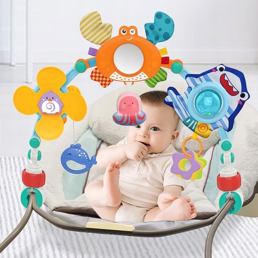 Іграшка привертає увагу і підтримує активність і допитливість дитини в колясці або автокріслі. Різні текстури стимулюють почуття дитини. Іграшки, призначені для розвитку рухів усього тіла та впливу на органи чуття.