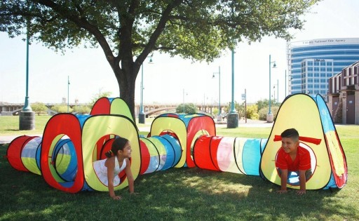 Сучасний комплект наметів, який не тільки розважає, а й навчає! Набір складається з 8 елементів! Набір можна об'єднати в одне ціле, створивши гігантський центр намету, або його можна розділити і використовувати для розваги, не обмежуючись однією моделлю. Набір в кольорах, які приємні для ока дитини.