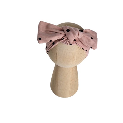 Дитяча пов'язка з бантами із серії "Точки". Він виготовлений з надзвичайно м'якої та ніжної тканини, добре прилягає до голови дитини та захищає вуха малюка. Він стане ідеальним доповненням до багатьох стилів маленької леді.