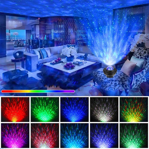 - 10 режимів освітлення Зоряний проектор: зоряний нічний проектор може проектувати реалістичне зоряне нічне небо на стелю.4 різнокольорові лампи (синій, червоний, зелений, білий) для створення 6 колірних комбінацій. Поєднуючи океанські хвилі, світло та зірки, він може досягти до 10 режимів проекції, це як подорож під водою, досягаючи та торкаючись зоряного неба, фантастичний та веселий проектор океанських хвиль.