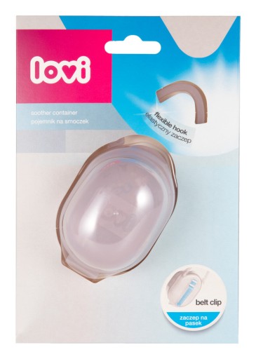 Чохол для пустушки LOVI. Чохол для пустушки LOVI - це практичний продукт, який допомагає підтримувати пустушку в чистоті та безпеці. Чохол виготовлений з безпечного пластику і є універсальним і підходить для більшості видів пустушок. Його унікальною особливістю є дві ручки, які дозволяють легко прикріпити чохол до різних предметів, таких як коляска, автокрісло, штани або ремінь. Завдяки цьому соска завжди під рукою. Виріб можна обшпарити окропом, що додатково забезпечує гігієнічність. Це ідеальне рішення для батьків, які хочуть забезпечити своїм дітям комфорт і безпеку під час прогулянок або подорожей.