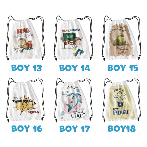 Біла сумка з барвистою хлопчачою графікою та персоналізацією — оберіть візерунок і напишіть своє ім’я!