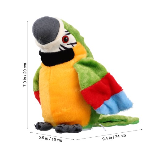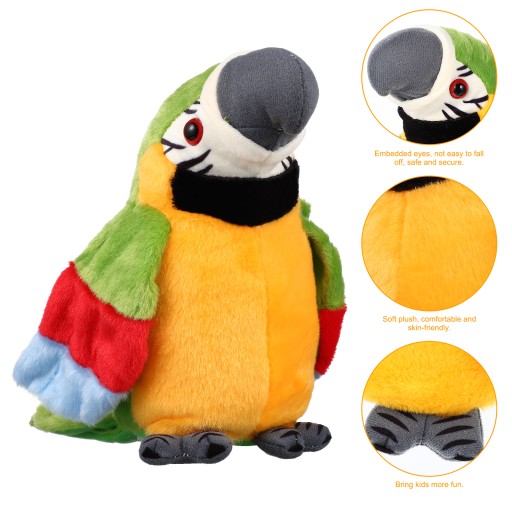 Цей електричний папуга виготовлений з високоякісного матеріалу, з яким безпечно грати. Завдяки своїй милій формі папуги ця плюшева іграшка може принести багато задоволення дітям, вона ідеально підходить для гри вашої дитини та є дуже розвивальною. Ця плюшева іграшка буде повторювати те, що ви говорите, а її крила можуть тремтіти, коли ви вмикаєте живлення.
