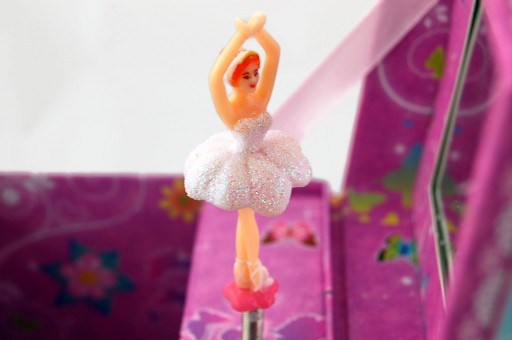 Красива квадратна коробочка для дівчинки. Ідеально підходить для зберігання дрібних предметів, таких як шпильки та гумки, або інших цінностей. Всередині є дзеркало для огляду, яке сподобається кожній дівчинці, і чарівна балерина, яка, заводячись, починає обертатися в ритмі мелодії.
