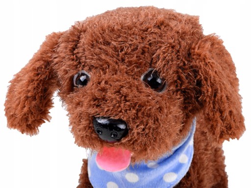 Інтерактивна собака на повідку замінить дитячу мрію мати справжнього домашнього улюбленця. Напевно, немає дитини, яка б не мріяла мати власну собаку. Плюшева інтерактивна собачка живиться від трьох батарейок 1,5 В АА, завдяки яким вона може гавкати, ходити, виляти хвостом і скиглити. Собака реагує на дотики, дрімоту дитини, гавкіт, виляння хвостом і радість.
