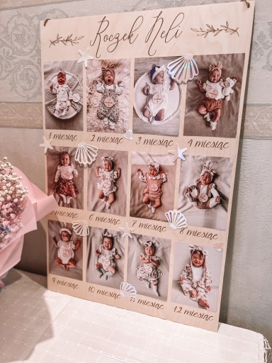 Персоналізована дошка з фотографіями кожного місяця першого року вашої дитини. Дошка чудово підійде як декор для святкування дня народження, а також цікаво прикрасить дитячу кімнату.