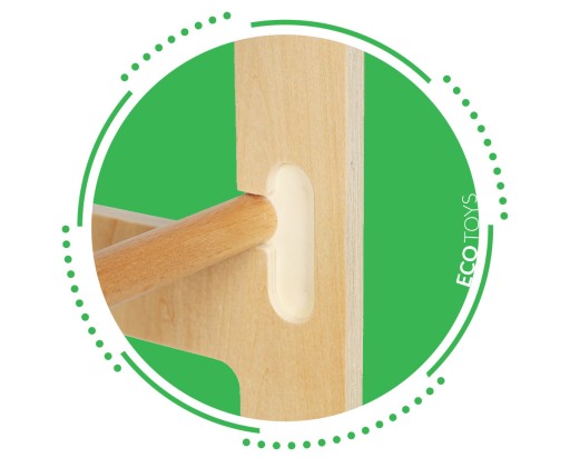 Помічник оснащений додатковою штангою, яка виконує роль бар'єру для захисту дитини від падіння з верхньої платформи. Одним простим рухом ви можете вставити або вийняти штангу, завдяки чому ви легко подбаєте про безпеку свого малюка.