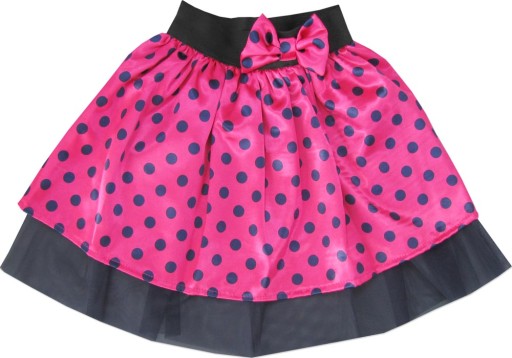 Нова спідниця з фатину темно-синього кольору. Спідниця складається з трьох шарів: зовнішній шар - поліестерова тканина в темно-синій горошок, другий шар - темно-синій фатин, останній шар - підкладка з білого поліестеру. Широка чорна резинка на талії, прикрашена рядом бантів у горошок. Спідниця виглядає дуже красиво, ніжний матеріал робить її дуже легкою і виглядає унікально, ідеально підходить на кожен день і урочисті випадки. Дуже якісний матеріал, спідниця виготовлена на польській швейній фабриці, що гарантує найвищу якість.