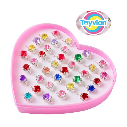 Кільця з дорогоцінними каменями, які заворожуватимуть ваших дочок. Використання яскравих кольорів і візерунків дорогоцінних каменів. Вони упаковані в коробку. Ідеально підходить для сумок для сувенірів на день народження, удаваних ігор і каблучок для одягання, чаювання, скриньки зі скарбами тощо. Ми упакували каблучки для дівчаток у коробку у формі серця, це гарний подарунок для вашої принцеси. Ідеально підходить для днів народжень, удаваних чаювань, карнавалів, скриньок зі скарбами тощо.
