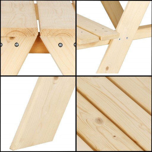 Красива дитяча садова лавка з дерева стане чудовим доповненням до будь-якого вуличного облаштування. Він має елегантний позачасовий дизайн, який порадує око кожної дитини. Дві зручні лавки в поєднанні з твердою стільницею також чудово підійдуть на терасі чи патіо. Мінімалістичний вигляд дозволить легко вписати меблі в навколишній простір.