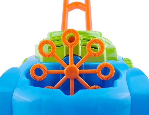 Іграшка призначена для дітей від 3 років. На ньому можна не тільки їздити, але й весело косити газон. Механізм, що живиться від батареї, виробляє бульбашки, які випускаються з передньої частини корпусу косарки під час руху. У набір входить ємність з бульбашковою рідиною, тому після складання можна відразу починати грати. Бульбашки видуваються автоматично. Невеликий вентилятор, розташований у верхній частині корпусу двигуна косарки, створює повітряний потік, який направляється на 8 обертових кілець. Їх занурюють в ємність з рідиною для купірування і по одному переміщують під маленьку насадку. Таким чином бульбашки видуваються безперервно. Завдяки 8 кільцям іграшка випускає велику кількість бульбашок одночасно.
