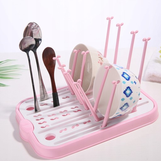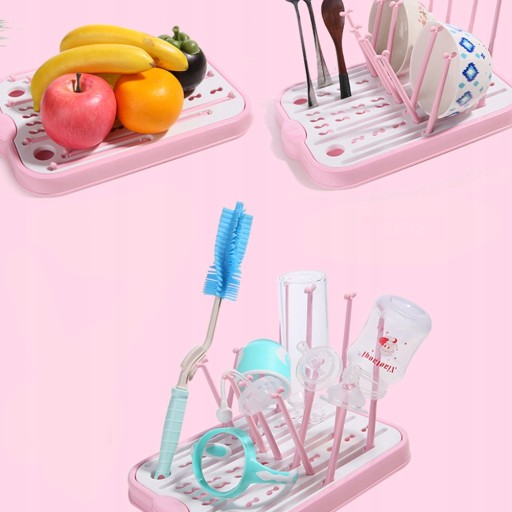Ця підставка для сушіння пляшок виготовлена з високоякісного матеріалу для міцного та тривалого використання. Усі кілочки складаються, тому ви можете регулювати їх положення відповідно до ваших уподобань. Злита вода стікала вздовж булочки і, нарешті, в лоток, ні та ні.
