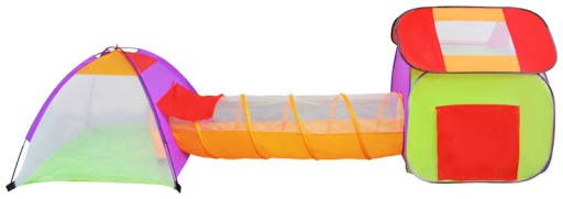 Намет для дітей - 2 будиночки з тунелем. IN У комплект входить квадратний намет з дахом, намет з каркасом і з'єднувальний намет тунель (можливість використання наметів окремо, без тунелю і будь-якої конфігурації завдяки кільком виходам з намету).