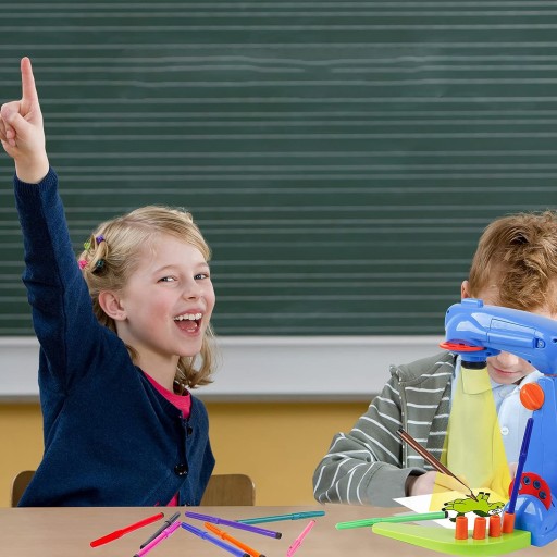 У цей набір входять не тільки проектор і слайди. Ми також включаємо 12 кольорових маркерів і спеціальний зошит для малювання. Все, що вам потрібно для творчих розваг, в одному компактному пристрої. Крім того, зручний тримач для ручок і слайдів забезпечує порядок і гарантує, що необхідні інструменти завжди під рукою.