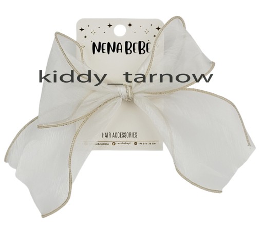 Кремова гумка для волосся з фатиновим бантом і бежевим краєм від NENA BEBE.