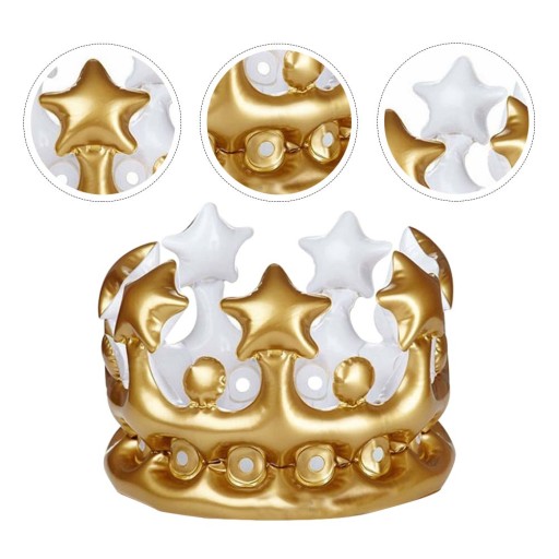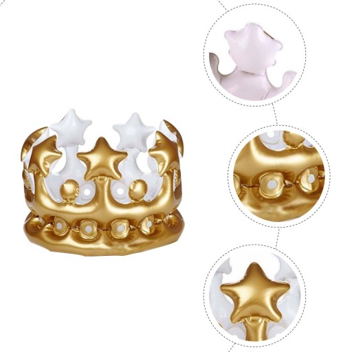 Ця надувна корона виготовлена з преміального ПВХ матеріалу для вашого використання. Це ідеальна прикраса для дня народження або інших тематичних заходів. Нехай ваші діти тримають свій мобільний телефон і комп’ютерну гру та грають у цю веселу іграшку у формі корони.