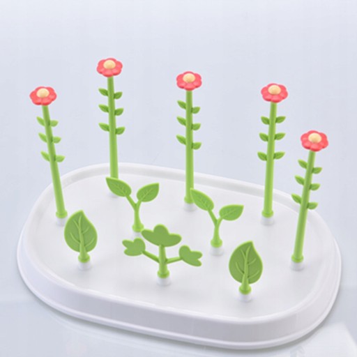 Ця підставка для сушіння пляшок виготовлена з високоякісного матеріалу для міцного та тривалого використання. Усі шпильки знімні, тому ви можете регулювати їх положення відповідно до ваших уподобань. Злита вода стікала по булочці і, зрештою, на лоток, ні бризок, ні бризок. Основний піддон має певну глибину, щоб утримувати краплі води, він міцний і практичний.