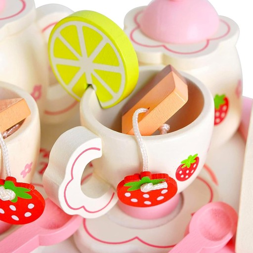 Іграшковий чайний набір — це популярна іграшка для дітей, яка спонукає їх удавати, що вони влаштовують вечірки, і виступати в ролі господаря чи господині. Гра з чайним набором розвиває у дітей соціальні навички, творчі здібності та уяву, і в той же час забезпечує їм задоволення та навчання, імітуючи повсякденні ситуації.