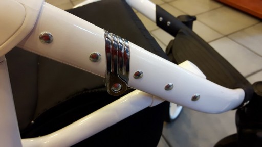 Вид петлі, встановленої в раму коляски (для прикладу показано хромовану петлю).