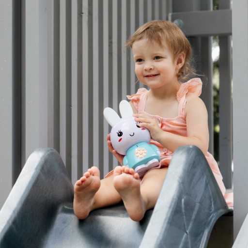 - Безпеку дітей гарантують сертифіковані матеріали. Однак завдяки спеціальному міцному матеріалу ABS, який в 30 разів міцніший за звичайний пластик, зайчик стійкий до ударів і падінь.
