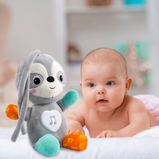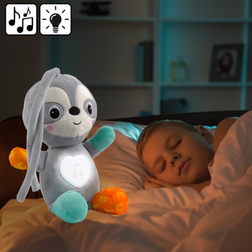 Коли механізм знаходиться всередині, плюш видає звуки і висвітлює ніжне приємне світло, яке дозволить дитині заснути.