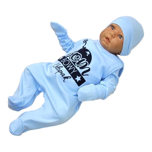 Підкладка виготовлена з безпечного для ніжного тіла малюка матеріалу. На ногах і стегнах є напис «Bomb Boy», що додає шарму і викликає посмішку на обличчях батьків і інших людей. Набір виготовлений на 100% від польського виробника.