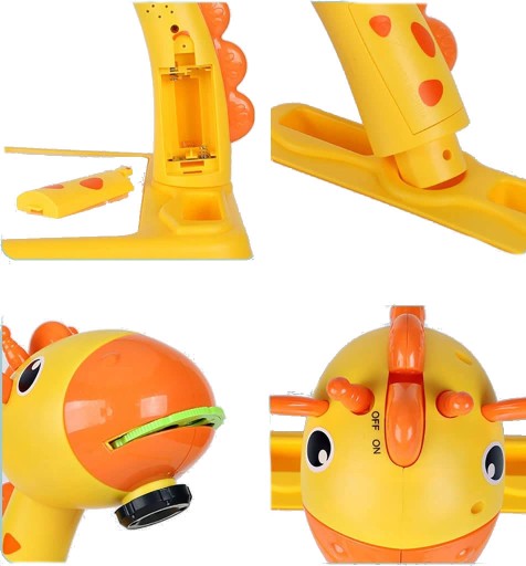 З проектором малювати стає набагато веселіше! Просто вставте диск у слот проектора та порухайте «гривою» жирафа, щоб увімкнути проектор. У нас є 24 гарних барвистих малюнка, які можна намалювати, наприклад тварин, транспортних засобів або рослин.