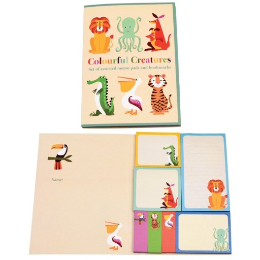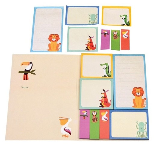 Набір карток із милими тваринами для дітей. Набір включає, серед іншого: розлінований зошит, картки для записів і наліпки, призначені для позначення фрагментів у тексті. Наліпки допоможуть у всіх дитячих ідеях і позначать важливі частини книжок і казок.
