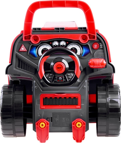 Вантажівка має капот, що відкривається, під яким дитина може перевірити такі елементи, як: рівень масла або замінити свічки.