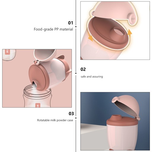 Цей контейнер для дитячого сухого молока виготовлений відповідно до найвищих гігієнічних стандартів. Його можна безпечно використовувати як ніжний дозатор сухого молока для дитячої суміші.