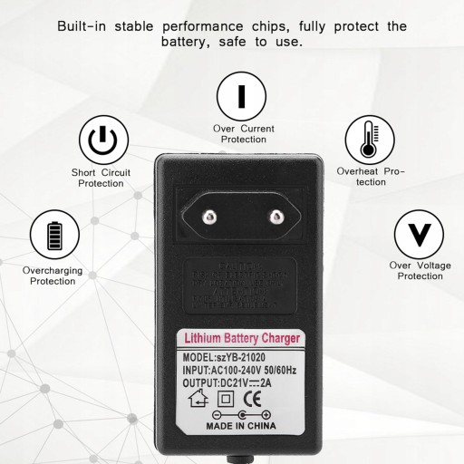 - Професійний зарядний пристрій для літій-іонних акумуляторів, ідеально підходить для заміни пошкодженого або втраченого, широко використовується для фар, іграшкових автомобілів, балансових автомобілів тощо.