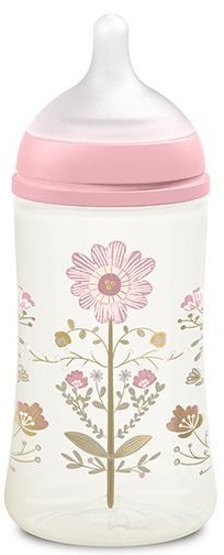 Дитяча пляшечка об'ємом 270 мл з численними квітковими візерунками та золотими елементами.