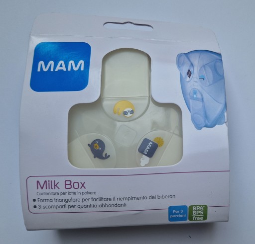- Багато місця, контейнер для дитячого харчування MAM оснащений 3 відділеннями, які вміщують до 40 г порошку на 3 порції. Завдяки цьому він забезпечує багато місця та є ідеальним доповненням до дитячого обладнання